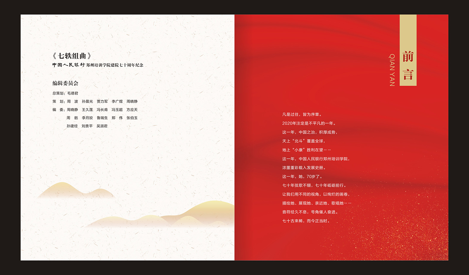 關(guān)鍵詞:中國人民銀行 鄭州培訓學(xué)院 畫(huà)冊設計 時(shí)間:2021-05-06 作者:布朗德