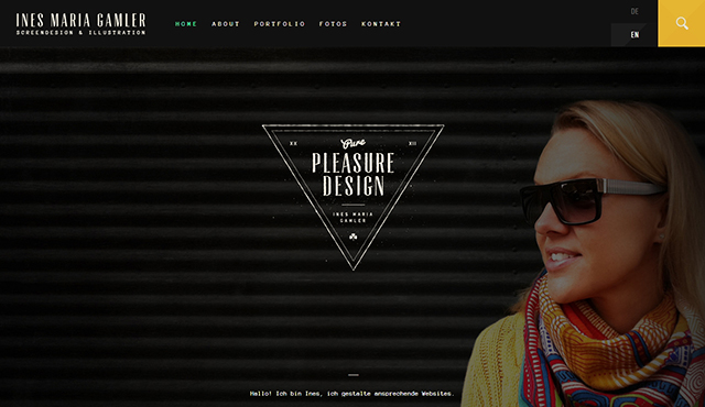Ines Maria Gamler網(wǎng)站中展示的女性正側著(zhù)臉,雙眼注視網(wǎng)站中間的文字。打開(kāi)網(wǎng)站時(shí),大多數人會(huì )首先關(guān)注人物的臉部,并進(jìn)一步受到人物視線(xiàn)的引導。